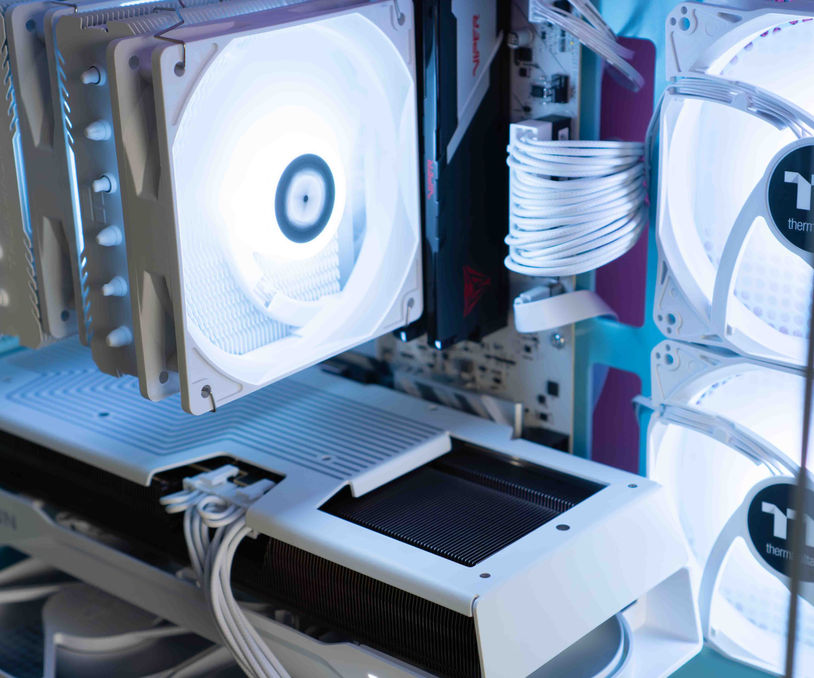 De Thermalright Peerless Assassin 120 SE White ARGB houdt de CPU koel en past visueel perfect bij het witte thema van de build.
